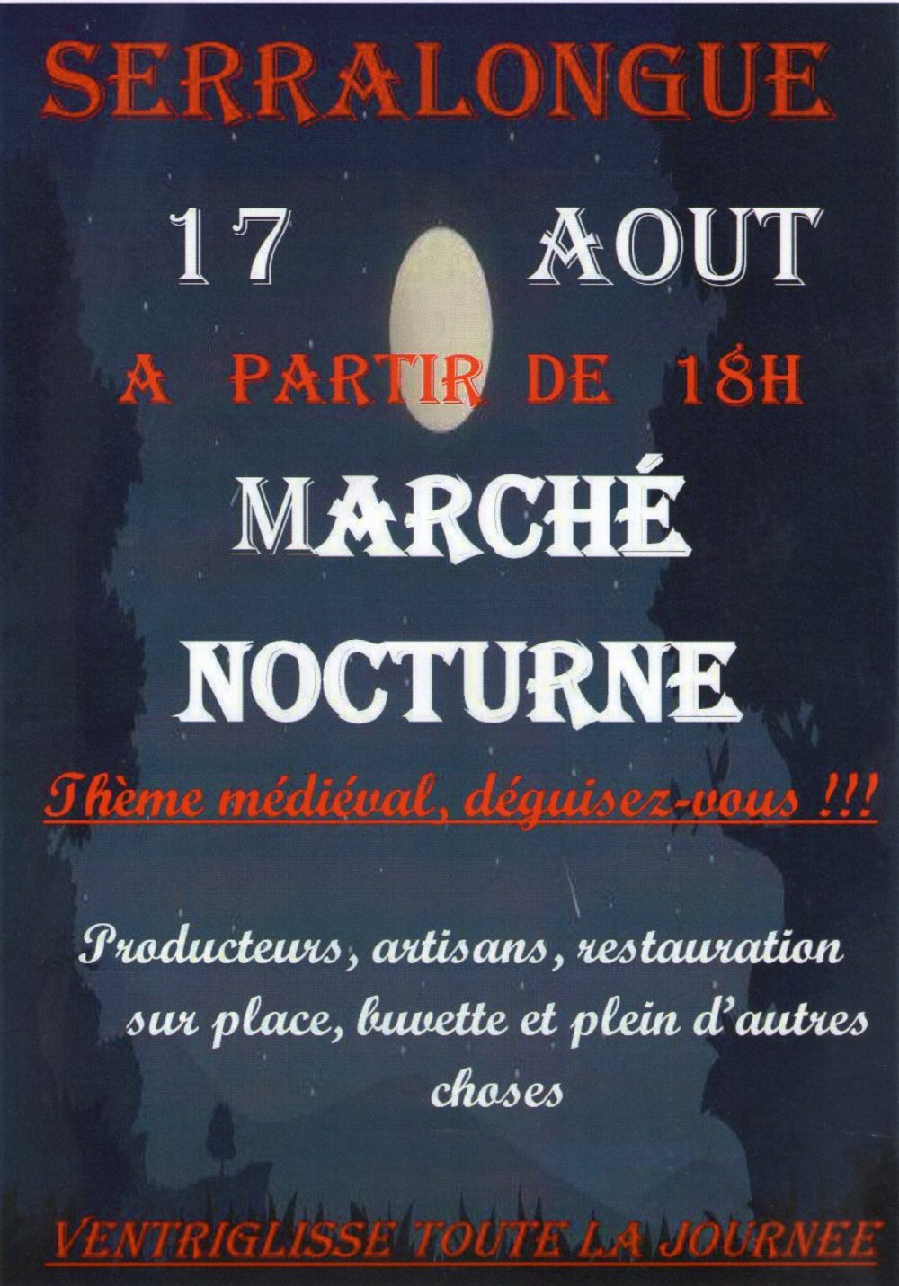Nous vous attendons nombreux le 17 aout avec toute la journée un Ventriglisse suivi du Marché Nocturne à partir de 18h